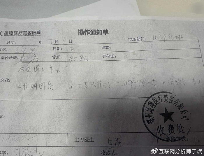 郑州星璨医疗美容医院负责人表示,医院在进行手术前,确实要求患者提供有效身份信息,并且手术同意书需由患者本人签字。医院声称,他们在手术前已经看到了患者的身份证复印件,并且有患者本人在现场,因此认为手术是合法合规的。