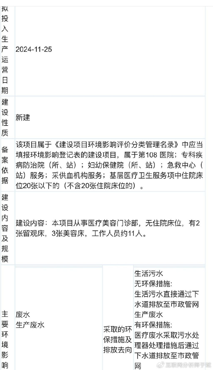 通过该机构的公开招标信息得知,在去年11月20日,该机构还在装修招标中。招标信息还显示,该机构仅有两张留观床,三张美容床。