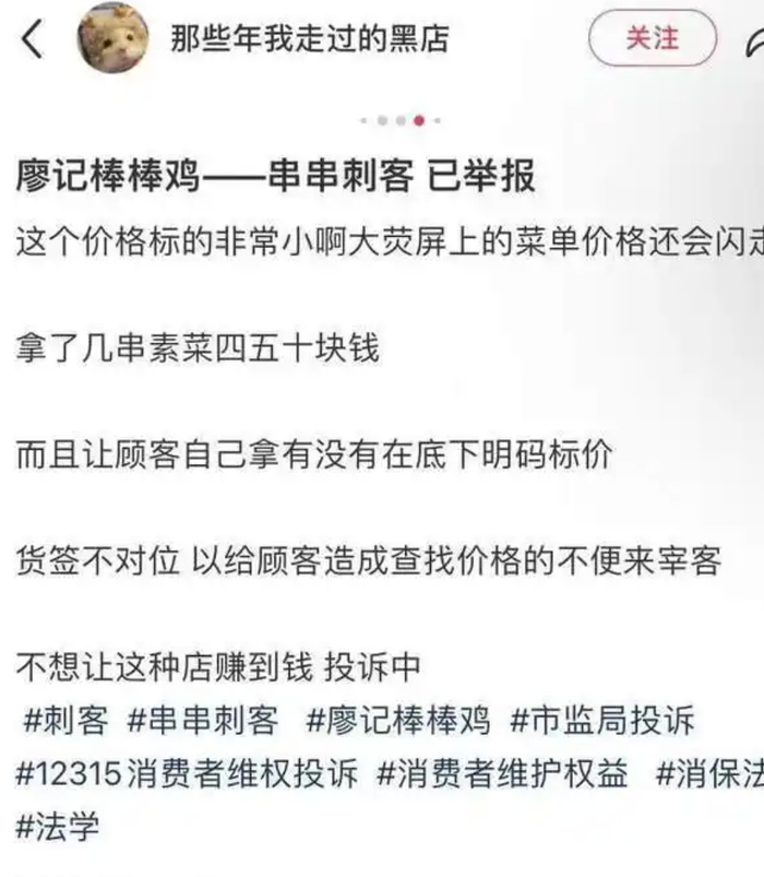 令人玩味的是,曾经代表“地道川味”的廖记棒棒鸡,如今在社交媒体上却被年轻消费者冠以“串串刺客”的称号。