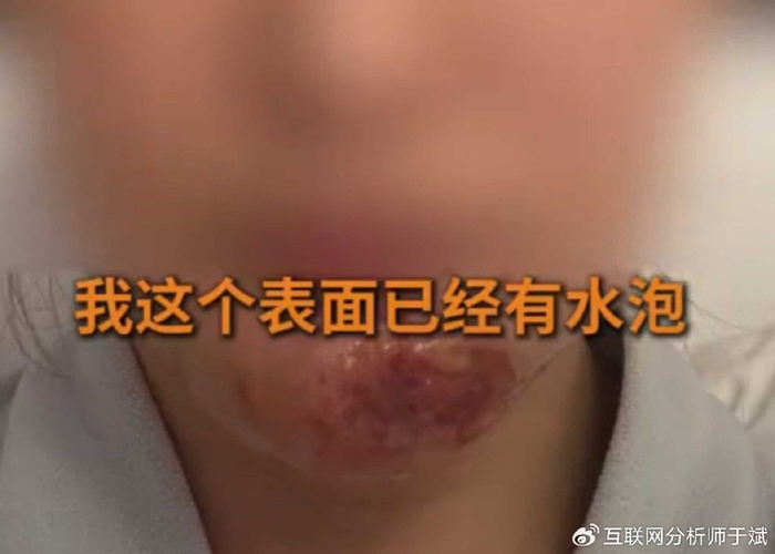 天不遂人愿,事情的发展越发地糟糕。术后仅3天,丁女士便发现下巴处出现了大面积水泡,与徐州予美机构工作人员沟通后,对方却称这是正常现象,并通过快递给她邮寄了一支烫伤药膏,告知她只要坚持涂抹伤口便会逐渐恢复。