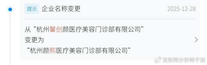 值得注意的是,天眼查显示该机构已于12月25日更名为杭州颜熙医疗美容门诊部。