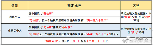 以“有无住所”和“居住天数”为判定标准,将个人所得税的“纳税人”分为“居民个人”和“非居民个人”。