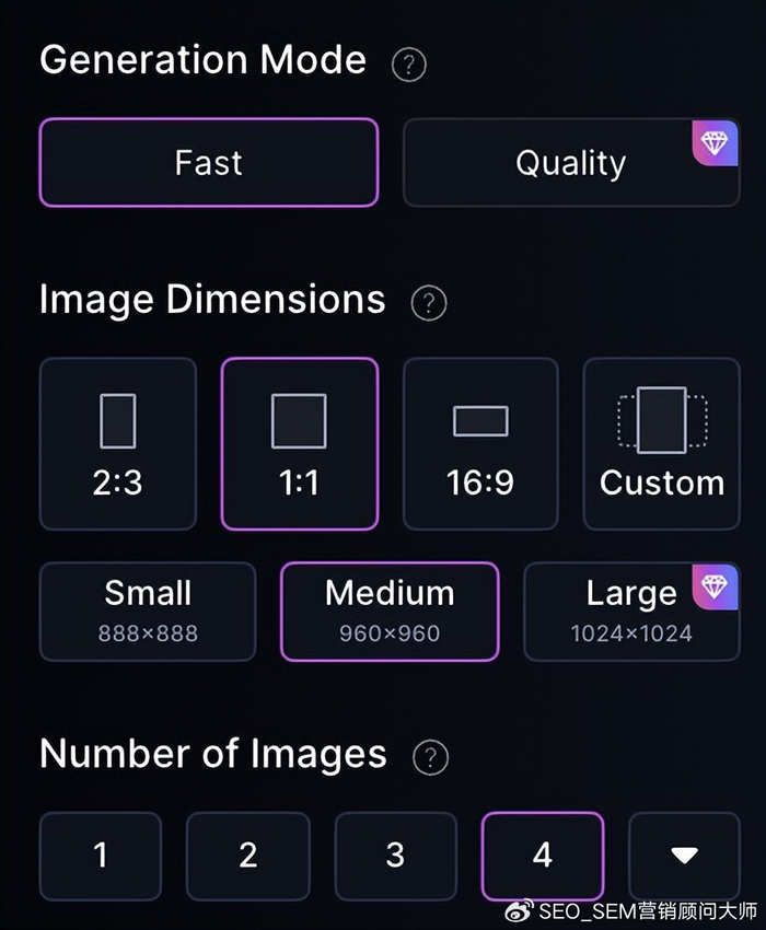 你获得指定的图像尺寸、图像的数量以产生,而产生模式("快速"或"质量").
