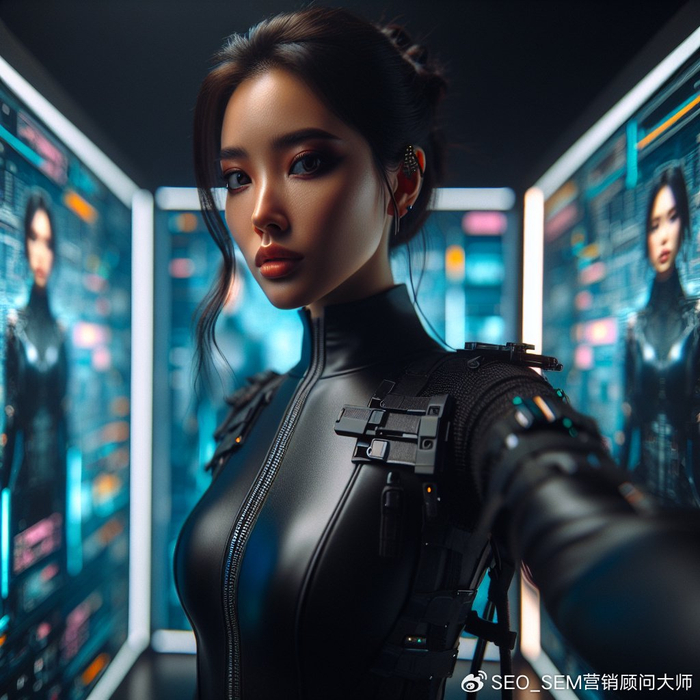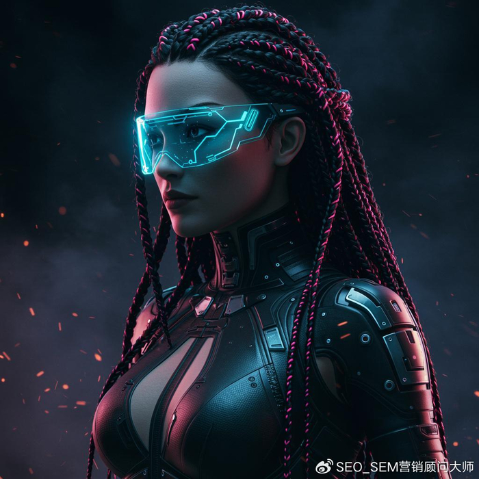 "生成一个超现实的影像一个女人戴着一个黑色的庞克服装。"