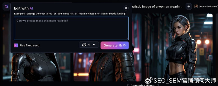 一旦图像已经产生,你可以编辑使用的一种提示,这是大制作的调整,而不是开始。