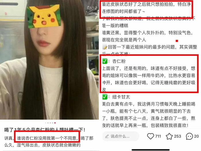 常年喝燕窝胶原杏仁七白粉的人,干燥的皮肤也会像“喝了水一样”,气色好了并且有光泽了。