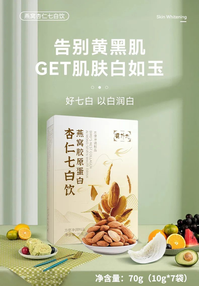 研发出了冲泡即饮的燕窝胶原杏仁七白饮 ,被粉丝称为“夏日七白饮”!