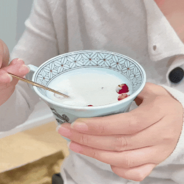 伴以脱脂乳粉调和口感,微甜不腻,香浓醇厚,增强清润之力。