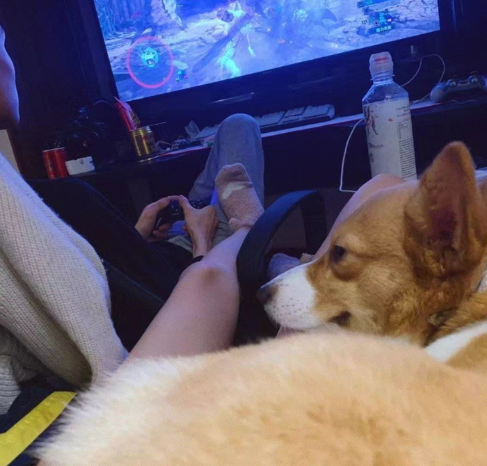 一个女孩在秦霄贤家摸他的狗、睡他的床。