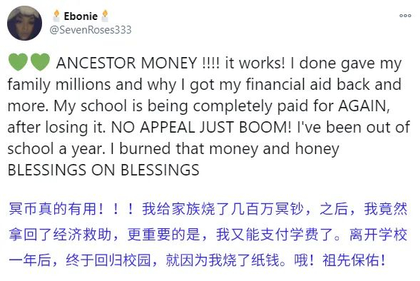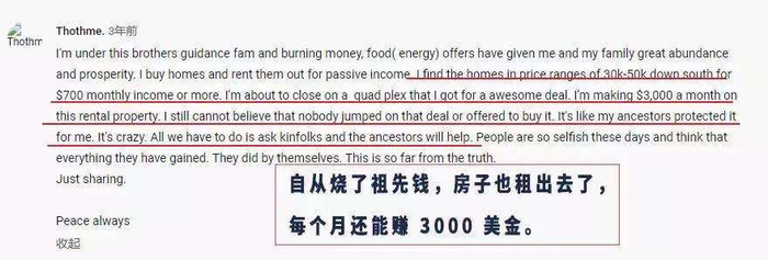 还有位哥,说自己烧了祖宗钱之后,腰不酸了,腿不疼了,一口气能上五楼了,财运来了。