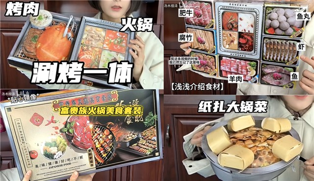 纸扎大锅菜里的金馒头还贴心地印上了汤汁,浓油赤酱,恩格尔系数直线飙升。