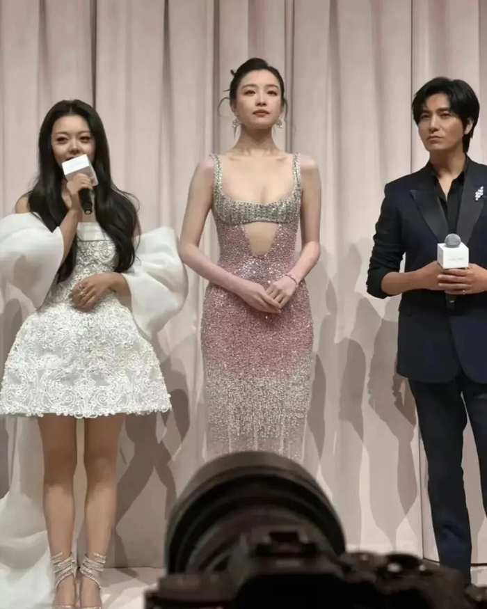 即便是在零下的户外活动,单薄礼服也成为明星与主持人唯一的选择。