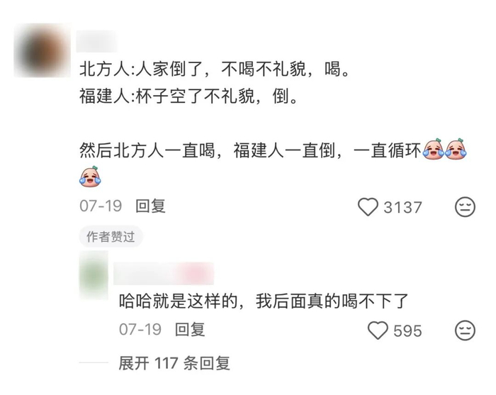 “福建人给北方人倒茶,福建人不能让杯子空着,北方人必须把茶喝完,就这样叠buff。”
