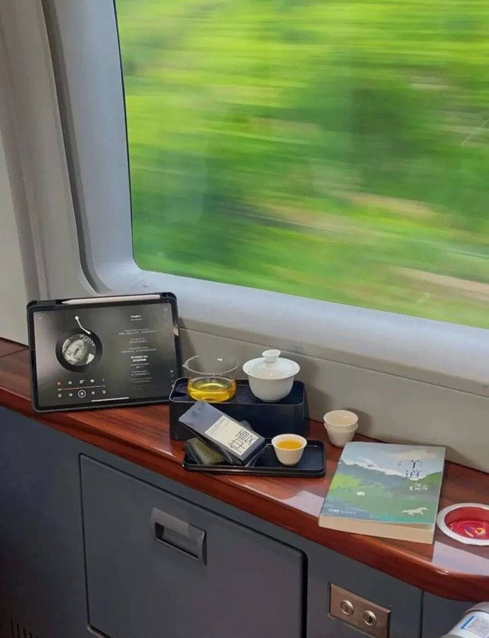 往小了算,高铁是绝佳的茶席场景,离厕所还近,慢悠悠喝几泡茶,结束一段旅程,完美。
