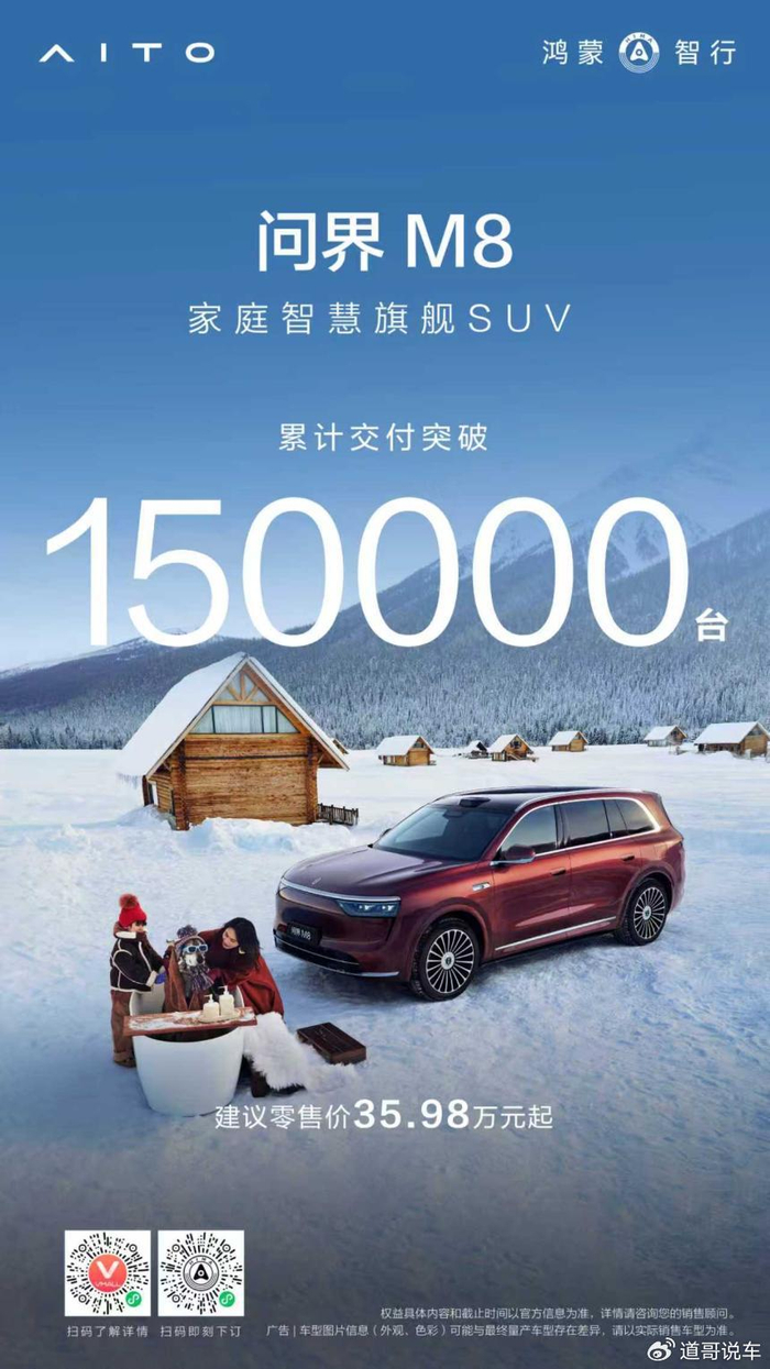 “8个月15万辆”的行业罕见交付速度,也从来不是一蹴而就,而是问界M8一步一个脚印深耕品质的匠心积淀,是问界M8秉承“智慧重塑豪华”理念,对家庭全场景出行需求的深度解构与精准响应。它精准满足了家庭用户对高品质、智能化、情感化的出行诉求,不仅彰显了中国品牌在高端汽车市场的核心竞争力,更为行业树立起中国品牌打造高端豪华车型、践行高质量发展的实力典范。