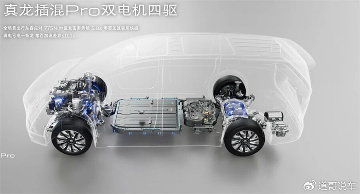 1.5T发动机+双电机,综合功率462kW,零百加速5.8秒。