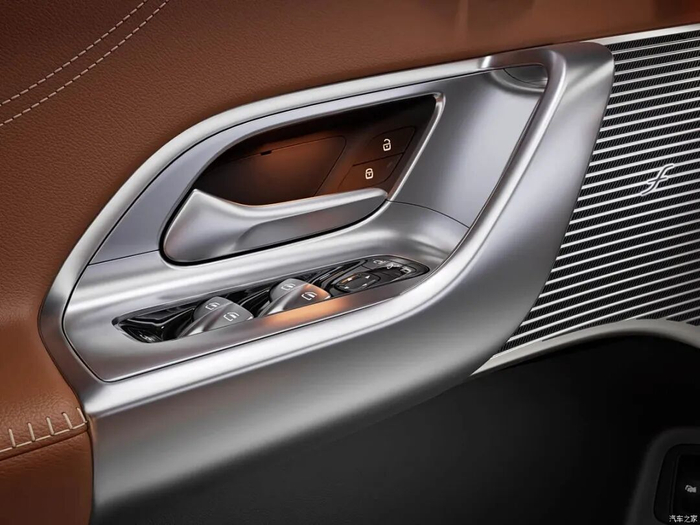 先来看内饰,此次曝光的新车整体布局与海外版保持一致,但其中控并未采用无缝大屏,能够看到明显的拼接缝隙,预计将与海外低配车型保持一致。作为参考,海外高配车型将采用39.1英寸的无缝超级大屏,这块超级大屏幕将首次采用矩阵背光技术(内置超1000颗独立LED灯珠)。同时,空调出风口位于大屏下方,中央扶手区域集成无线充电面板和水杯架。车辆后排采用三座布局,地板并不是严格意义上的纯平,有小小的突起。后排空调出风口下方为座椅、温度等独立控制屏幕。此外,车辆门板上的音响与开门拉手均与海外版保持一致。