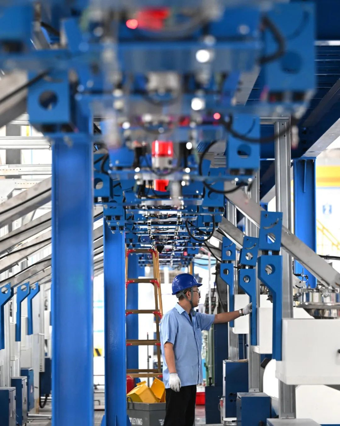 △在位于日照市五莲县的五征集团焊装车间,工人为汽车车身中地板进行总成焊接。无止镜