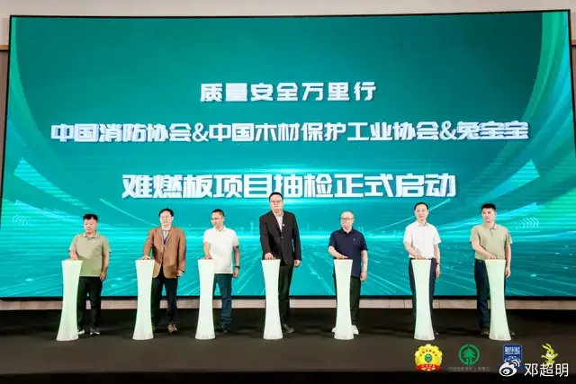 此次,中国消防协会、中国木材保护工业协会与兔宝宝共同开启“质量安全万里行”难燃板项目抽检行动,更多专业力量参与,以高标准的质量监管和规范化的市场督导,预计进一步加速难燃板的认可度提升。