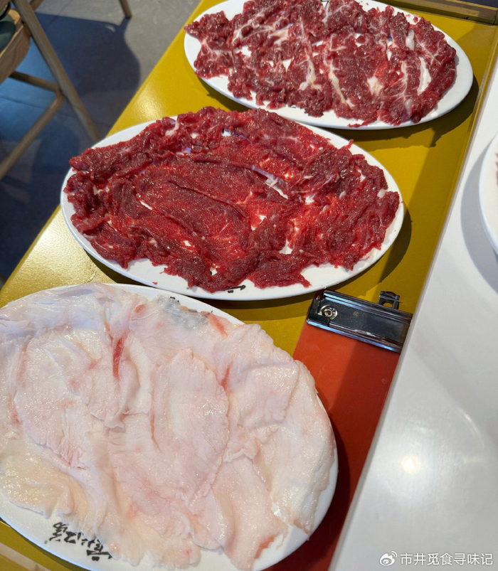 牛胸肉在牛胸口、两前腿中间的胸脯位置,最特别的就是它的纹理——脂肪和精肉交织成均匀的大理石花纹,纤维虽然稍粗,但吃起来鲜嫩带点韧性,关键是易熟还不容易老,涮煮时间短也不会柴。