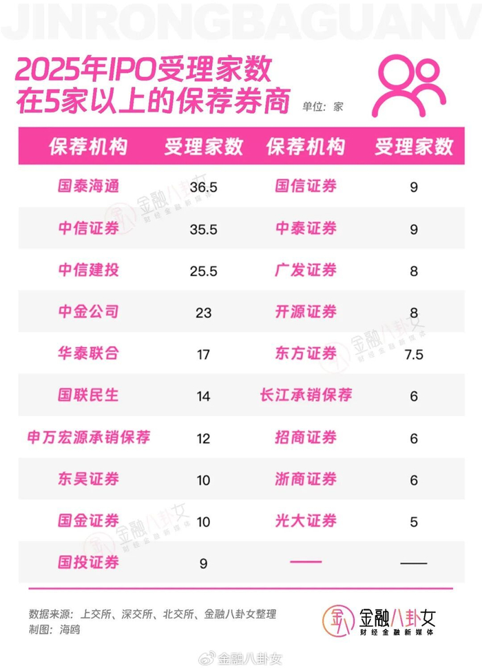 2025年共有41家券商投行有IPO项目获得受理,项目的集中度还是很高。