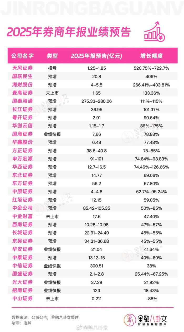 近日,多家券商发布了2025年业绩预告,净利润同比集体增长。