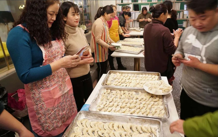 “他们过什么节都包饺子,出去送书慰问也包,赈灾义卖也包,和社区互动为群众搭建图书角也会包,包好和大家一块吃,我女儿就是跟她们学会的包饺子。”