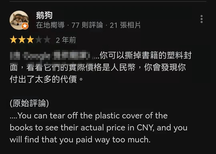 国内外的价码在数字上其实也相差无几,同样一本书,在国内可能要20元人民币,在海外需要20美元。