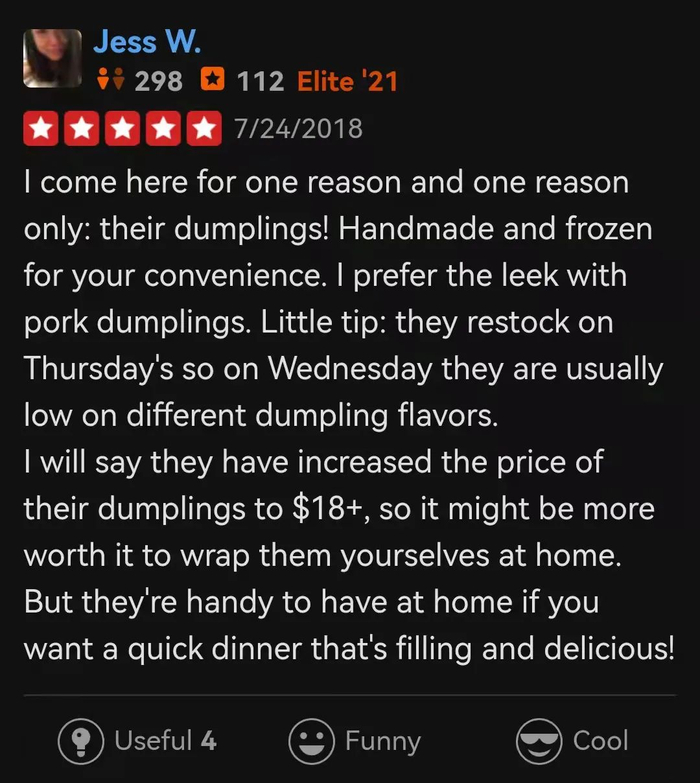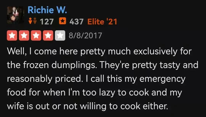 “来这里只有一个原因:他们的饺子...我喜欢大葱猪肉馅的。”