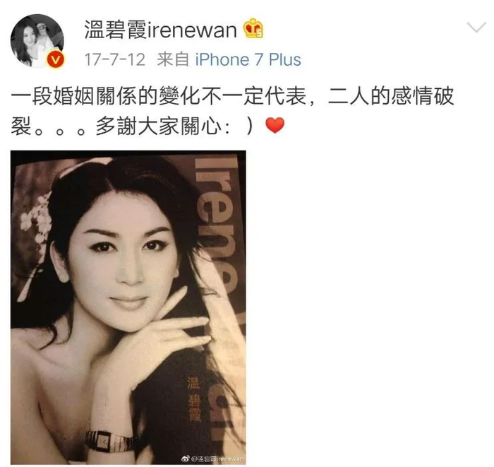 但谁也没料到,港媒爆料,2017年,温碧霞因热衷搞事业,导致夫妻俩聚少离多、矛盾升级,从而被传出婚变,夫妻两人分居四个月。