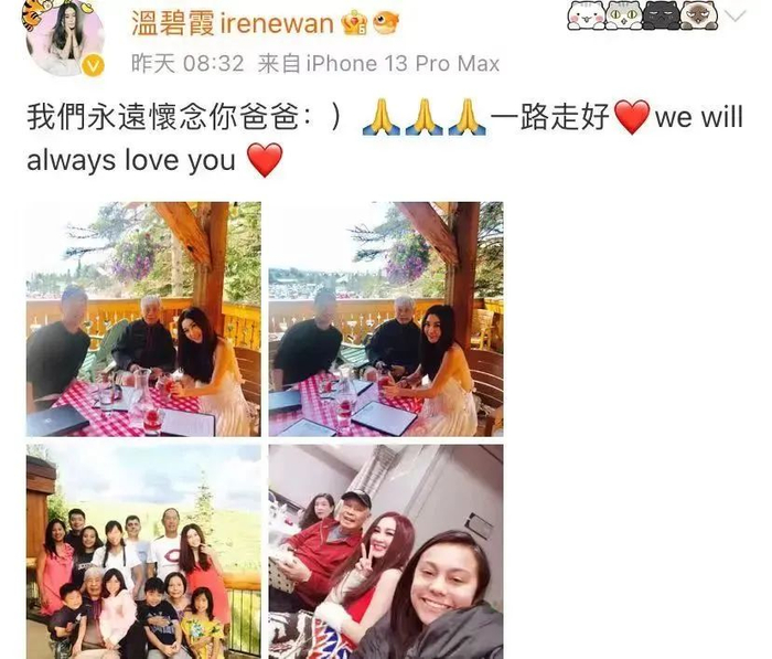 最近,嫁入豪门的温碧霞,在社交平台晒出一组家庭合照,透露其公公去世的消息,引发了外界的关注。