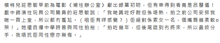 庄锶敏一直想尝试幕后工作,近来有人邀请她担任统筹和监制,她一口答应,希望通过这个机会,为自己开拓更多的出路,即使酬劳不高,她也觉得非常开心。