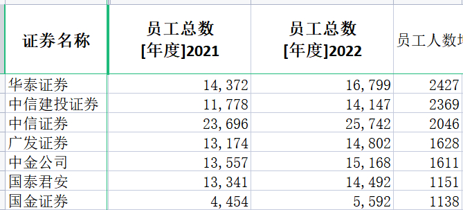 / 52家券商员工总人数增加超过2万 /