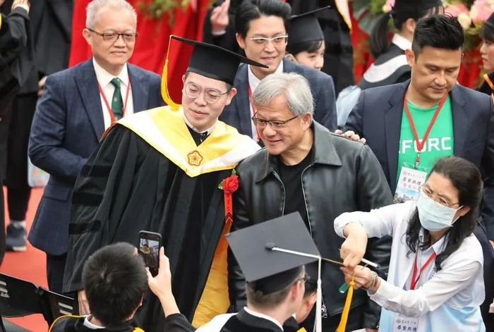 黄仁勋不仅爱穿皮衣,还要不论时间地点的穿。前几天在台大演讲,顶着30℃+的天穿翻领皮衣,看着一滴汗不流的老黄,难道皮衣里装了水冷?