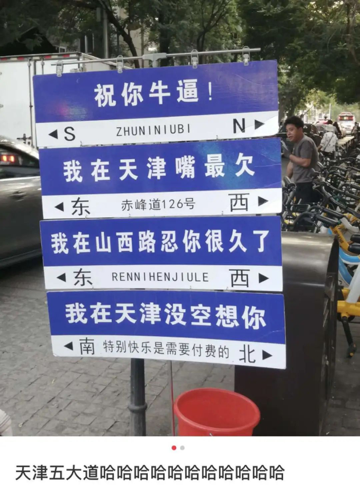 还是在天津,今年大火的网红鸡汤风路牌,也被“嘴欠”的朋友智慧魔改。