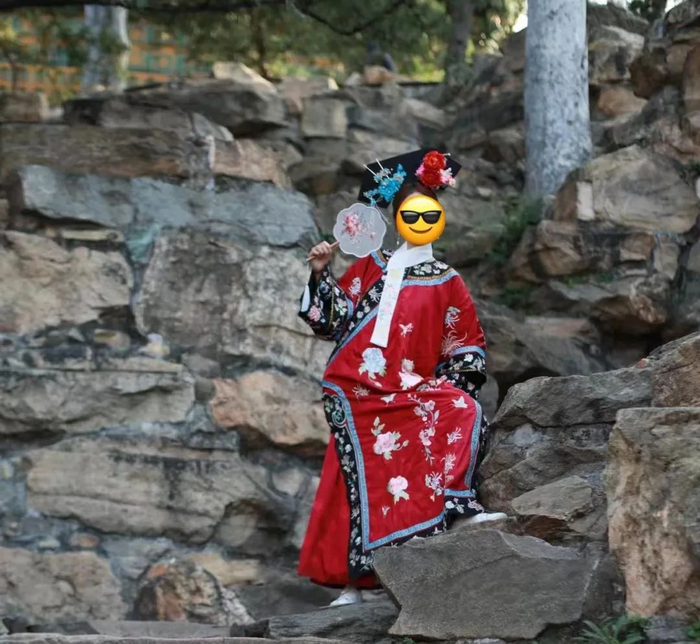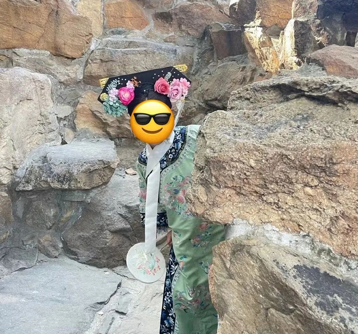 ▲图源:某音@一只九爪鱼,已获转载授权平时看都不看一眼的路边石头成了新奇的打卡道具,脸上熬夜赶PPT的班味儿一扫而光。穿上格格装,人均刚穿越到现代的“《宫锁心玉》小晴川”。