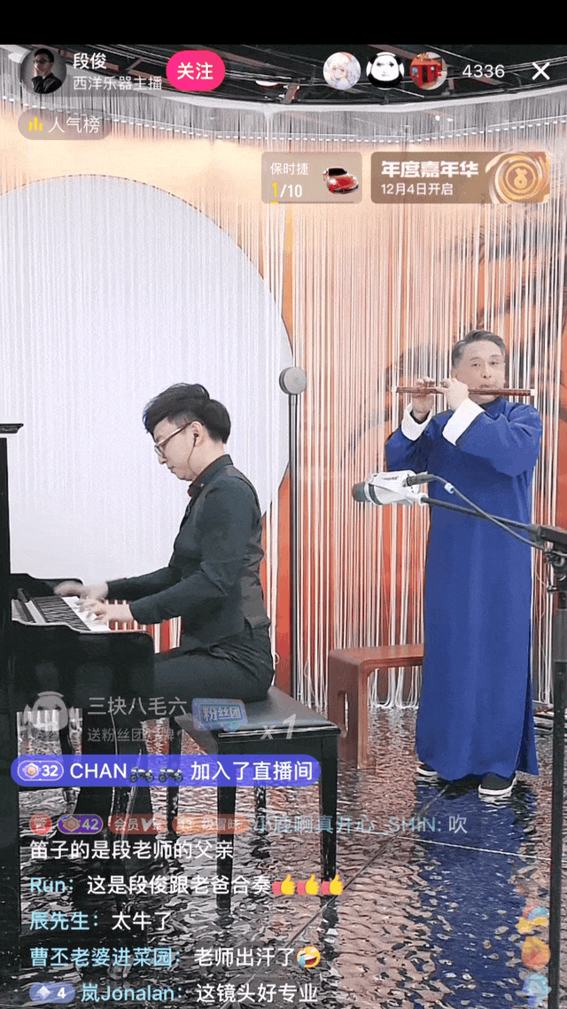 直播PK中,段俊的钢琴碰上中式乐器、唱腔、舞蹈,意外相融且碰撞出一种别样的,和谐的新中式之美。