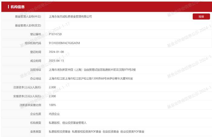 1月8日,上海永瑞天诚私募基金管理有限公司在中基协完成登记,实控人为上海来伊份股份有限公司。