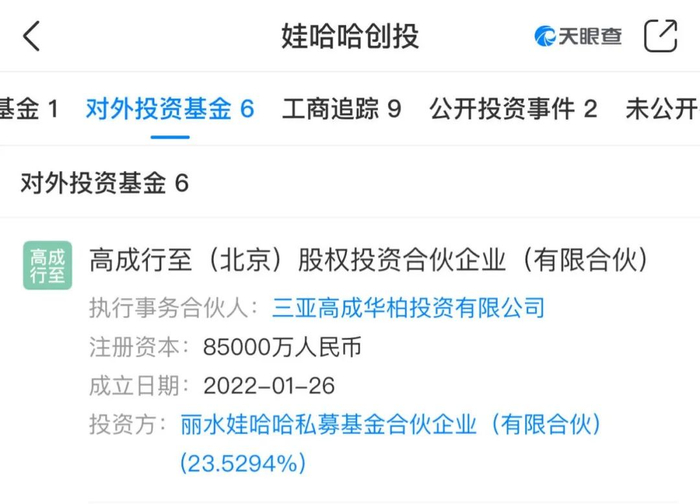 宗庆后在拿证之后,2022年4月才设立丽水娃哈哈私募基金合伙企业(有限合伙),本以为宗庆后会在私募圈大展身手,但目前对外只低调投资了高成行至,持股比例为23.5294%,再无动作。