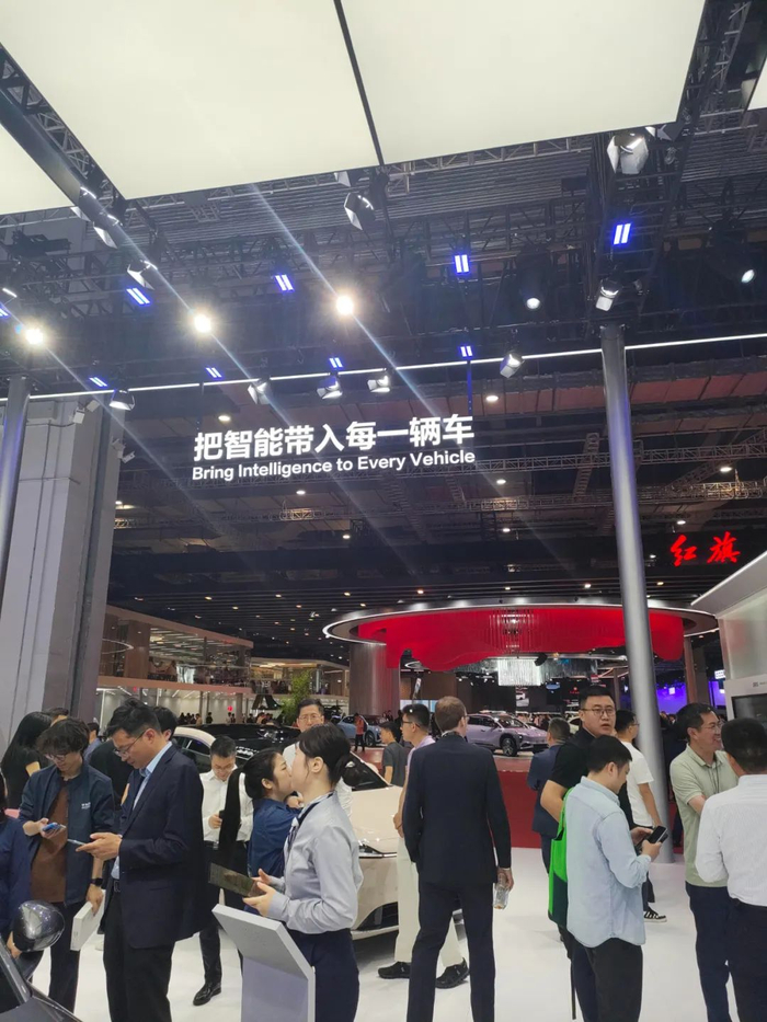 在车展现场,记者观察到,车企们不再单纯强调“智驾”,而是将其与智能化转型结合。比如红旗汽车强调“把智能带入每一辆车”。在描述“智驾”功能时,宣传用语也变成了“智能辅助驾驶”。