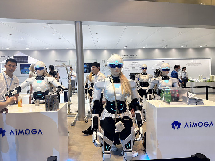 在奇瑞展台,人形机器人Mornine(中文名为“墨茵”)则忙前忙后,一会儿讲解车型,一会儿为观众递可乐。