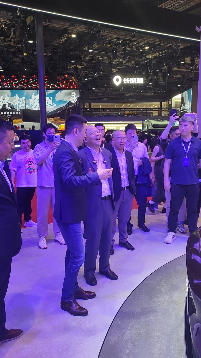 ▲贾健旭与余承东拥抱。摄影:王文彤魏建军(长城汽车董事长)做的咖啡是什么味道?4月24日上午,不少媒体被这个话题吊足了胃口,在长城汽车展台围观等候魏建军的咖啡。
