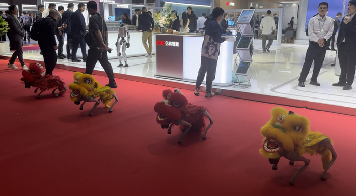 记者留意到,除了车企,部分参展的供应商还专门“雇佣”机器人,在展台前表演。亿纬锂能展台的机器狗表演舞狮,娱乐属性拉满。而这些机器人也颇具“人性”,“累了”还会蹲下“休息”。