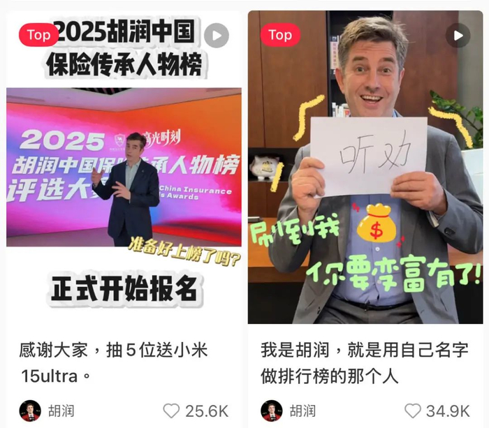 和福布斯类似,创建了中国富豪榜的胡润也在近年做起了“30岁以下创业领袖榜”。胡润自己就是新媒体运营高手,每1-2天就会在自己的小红书账号里更新一条视频,频率堪比专业博主,话题紧紧围绕富豪和钱。