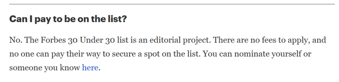 福布斯U30榜单的编委会在2023年明确声明,这个榜单不能付费上榜,“完全由编辑决策”。