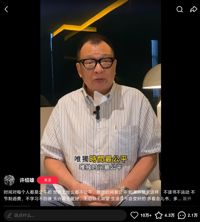 10月10日,许绍雄在小红书上发了最后一条视频。