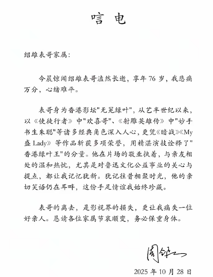 2025年10月28日,许绍雄因癌症引发器官衰竭离世,享年76岁。佘诗曼泪眼婆娑,黄子华沉默不语,周润发也清晨冒雨赶到,全程低调,一个时代,就此落幕。