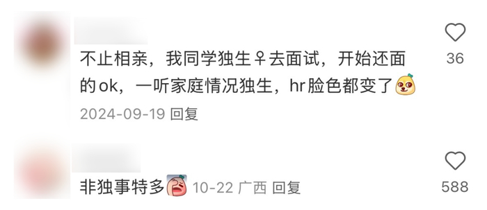 可一旦流入相亲市场,哪怕双方都是学历拉满、有房有车的顶配人中龙凤,“独生”遇上“非独”便会立刻产生“生殖隔离”,只因家庭配置不同,再有利的相亲优势也全成了减分项。
