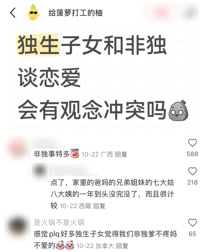 ▲图源:拾叁先生如果你是非独,却凡事不爱与家人分享,遇事也不找兄弟姐妹商量,表现得更像个独生子女;就会被外界解读为: