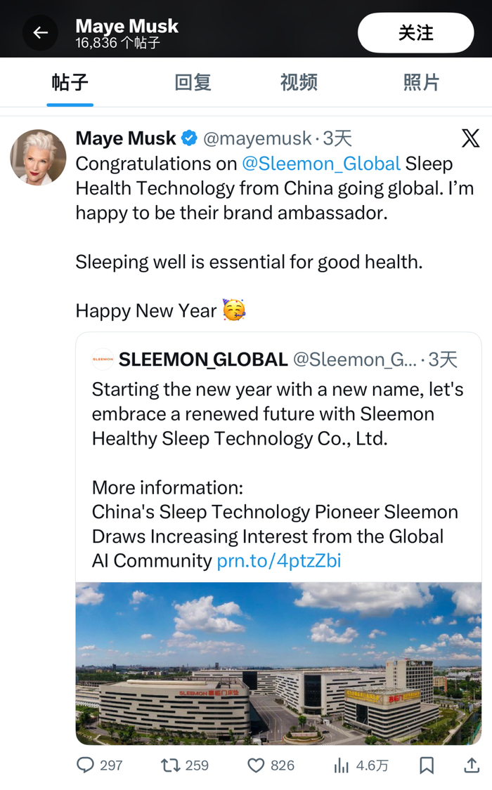 连马斯克的老妈,见过多少高科技产品的女强人,都专门祝贺了喜临门的更名,她还不忘补上一句“Sleeping well is essential for good health”。